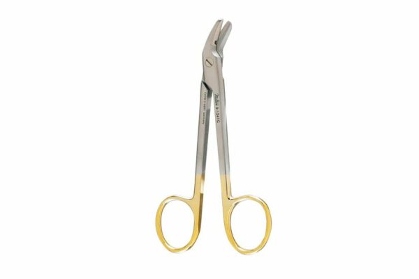 Wire Cutting Scissors – 4-7/8″ (124mm) – Tungsten Carbide – angled to side – one serrated blade